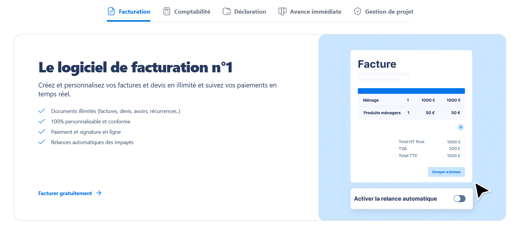 Toute la gestion de ton activité dans une seule app. Facture tes clients, gère tes finances et gagne du temps. Partout, à chaque instant.